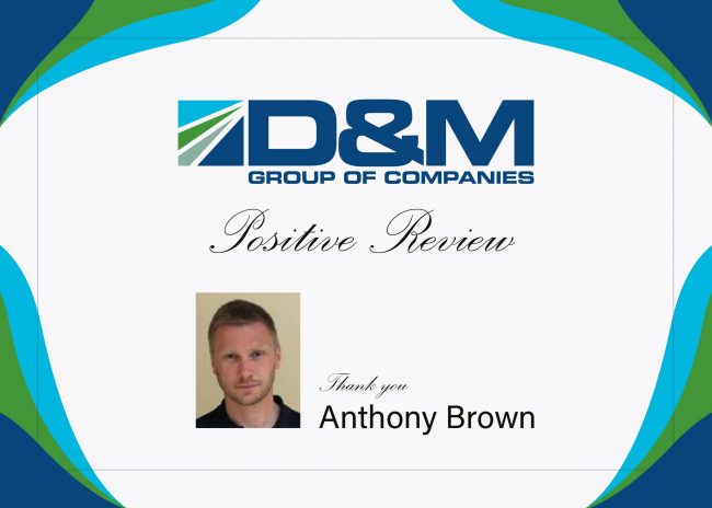 D&M Group would like to congratulate and thank engineer Anthony Brown. He met the client’s needs and went above and beyond expectations. The client was thrilled with Anthony’s work and ability when solving complex problems that were additional to his actual work. Please see client review below: ‘can’t seem to locate an email address for…